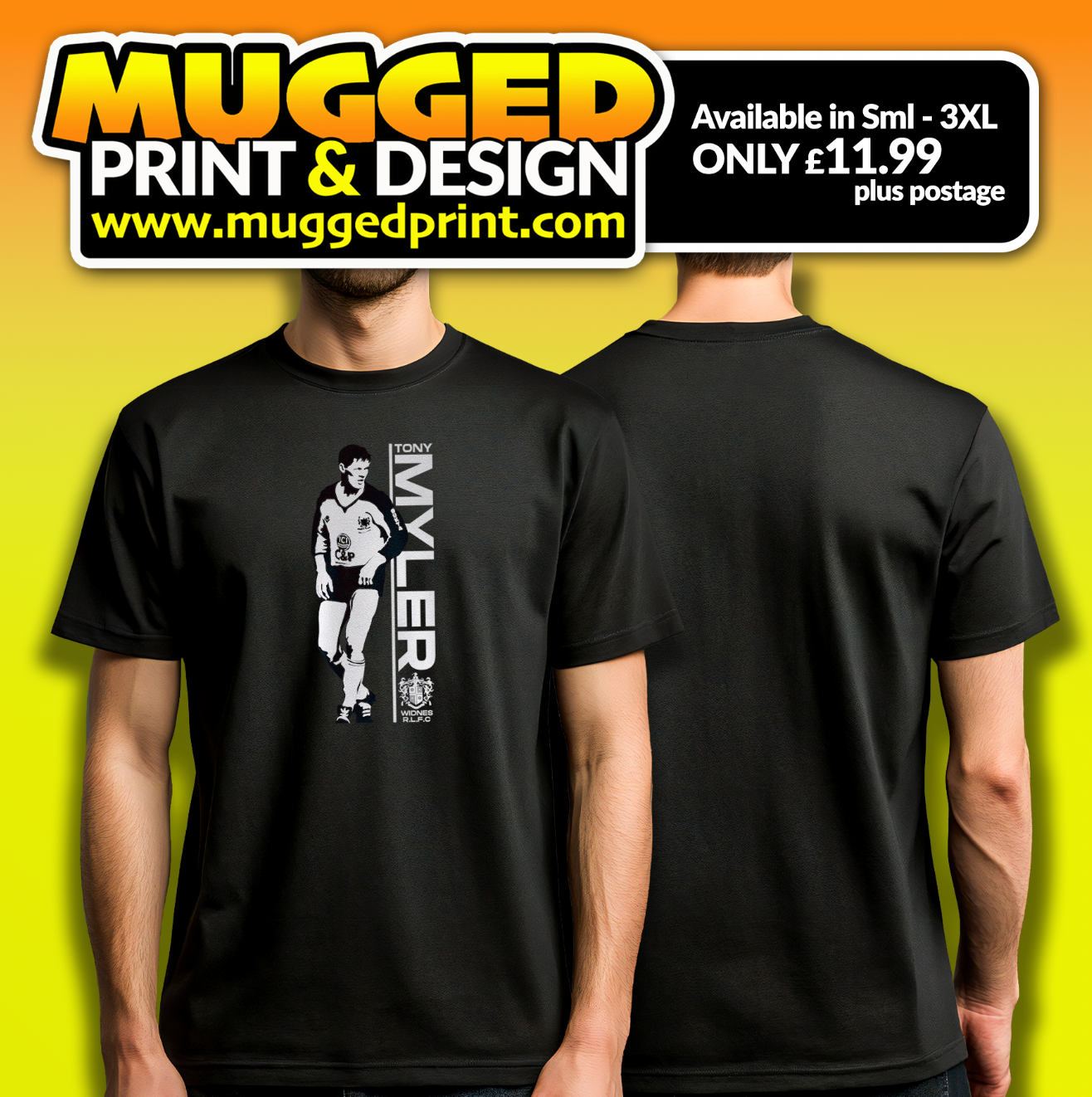 This black cotton T-shirt pays tribute to Widnes RLFC legend Tony "God" Myler, combining comfort with iconic rugby heritage. Crafted from soft, breathable cotton, it ensures all-day wearability while celebrating one of the sport's most respected figures. Ideal for fans who appreciate both quality apparel and the legacy of Widnes RLFC.