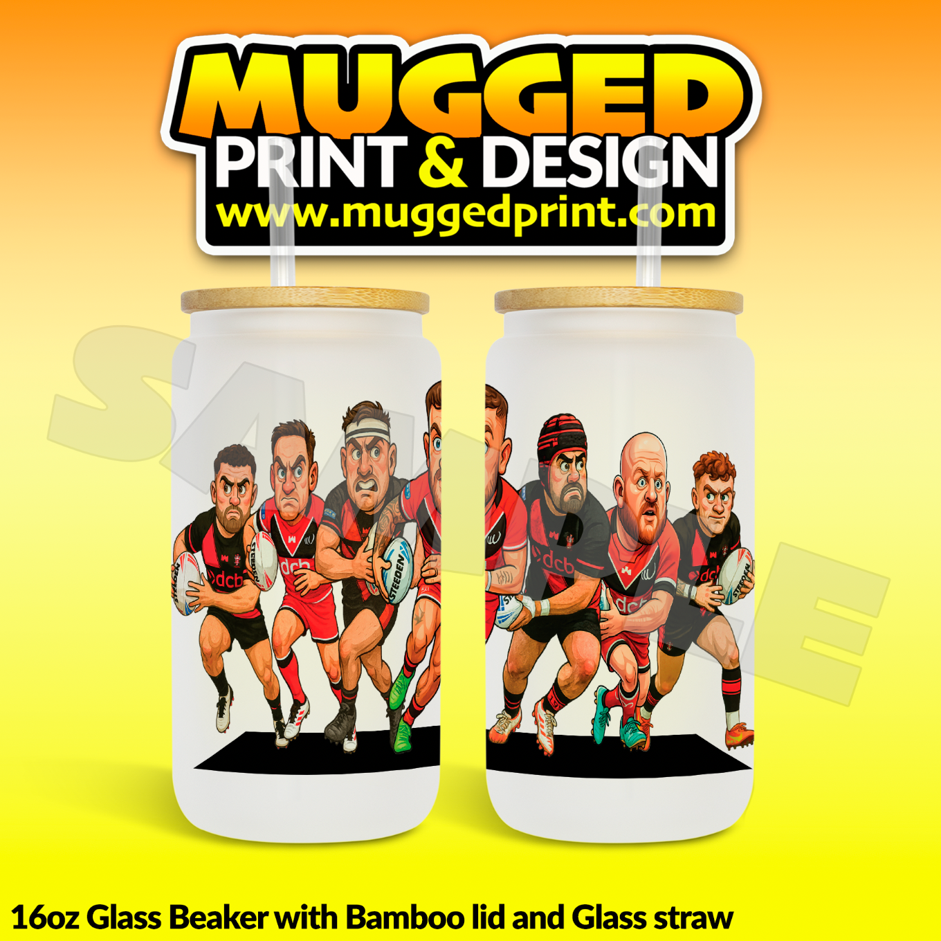 Widnes Vikings RL Libby Glass with Bamboo Lid & Straw